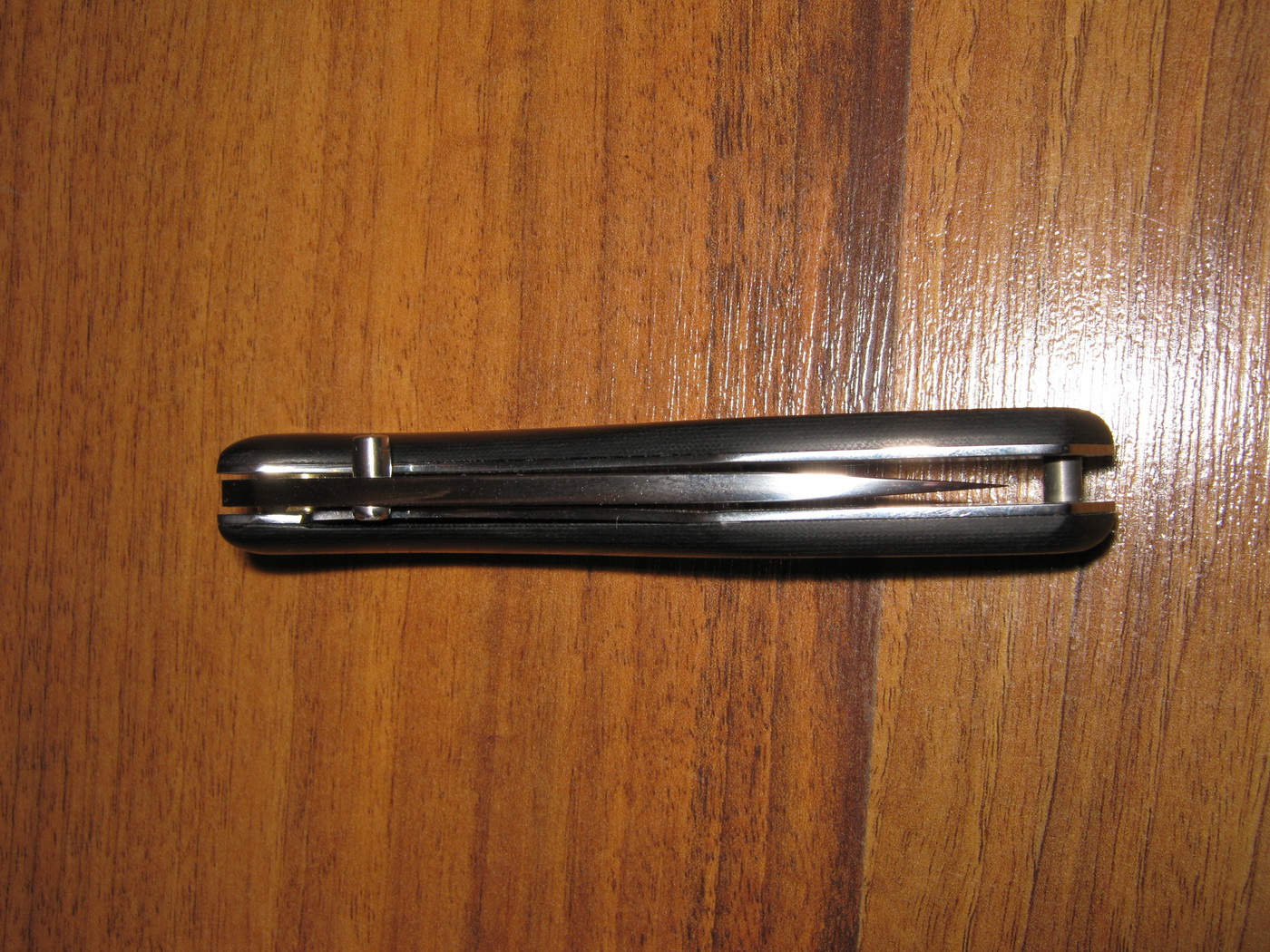 Привет Толик. Работа чистая, спору нет. Только вот есть замечание: рукоять можно было бы сделать короче (иль клин удлинить), а то у складников и так проблема пропорций. Счас картинку прилеплю...