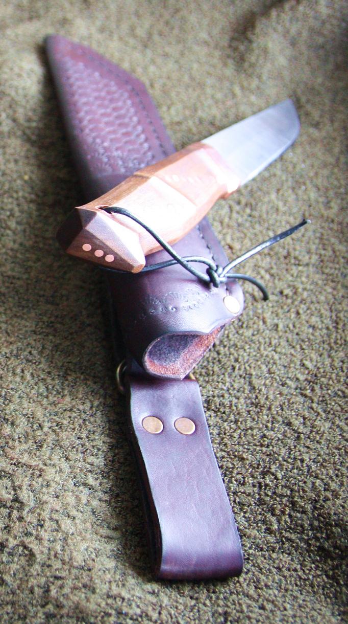 ножны чепрак, пропитаны шеллаком(полностью водоотталкивающий эффект), двойной подвес.