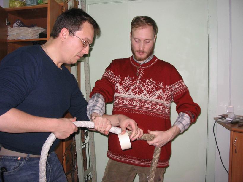Дождались! Хорошая,честная работа!Похвально!Предложения, в качестве обмена опытом:1)канат обматывать легче втроём,и натяг ленты сильнее;2)резать канат на доске,ориентированой вдоль волокон,РК сохранней остаёться;нужна будет кальчужка на три пальца-вышлем,пишите.Затратные тесты,но яркие и информационные-молодцы!!!
