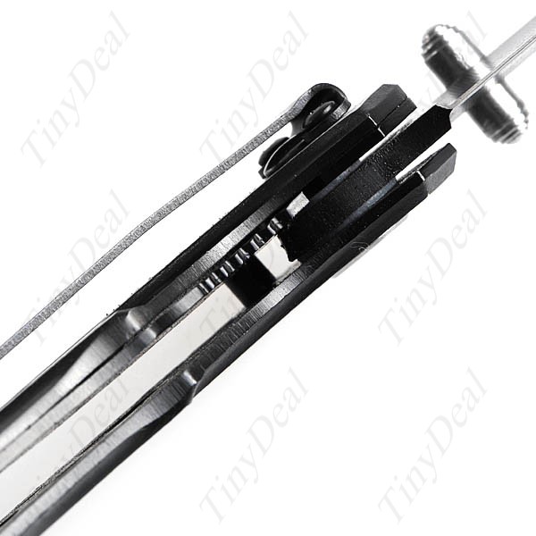 Механизм раскрывания очень четкий, короткий ход пальца и клинок выскакивает с характерным щелчком. К слову сказать шпенек очень цепкий как в принципе и у Магнума. Шайбы и на том и на другом фторопластовые.