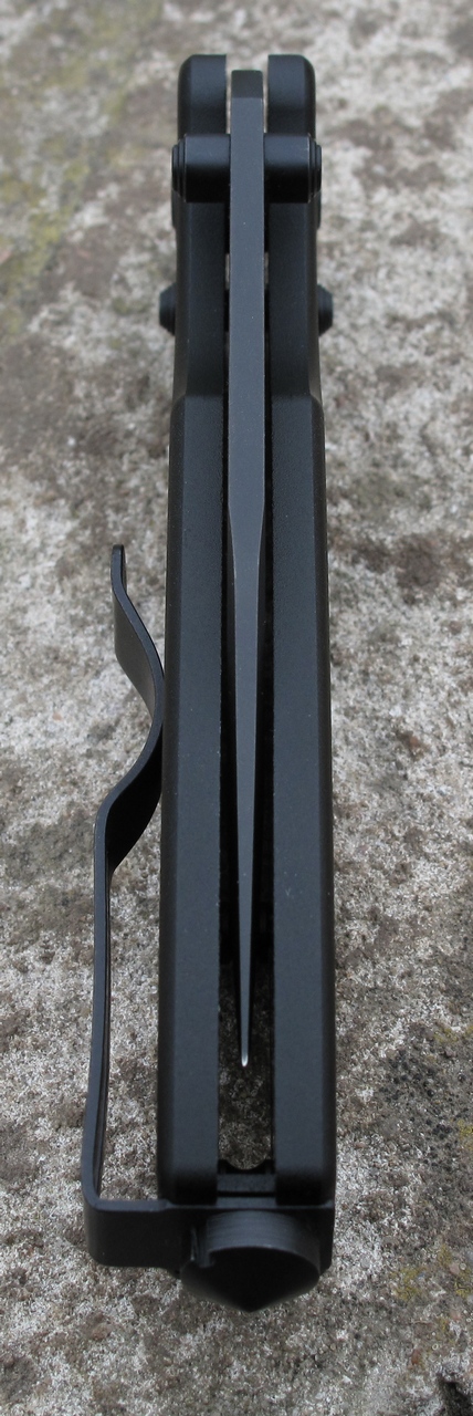 Осевой винт имеет характерный наследственный профиль и безошибочно выдаёт страну происхождения. :D Но надо признать выполнен качественно, кривизны штамповки не выявлено и не цепляется при извлечении из кармана. Можно надеяться, что сталь поставили тоже не кастрюльную.