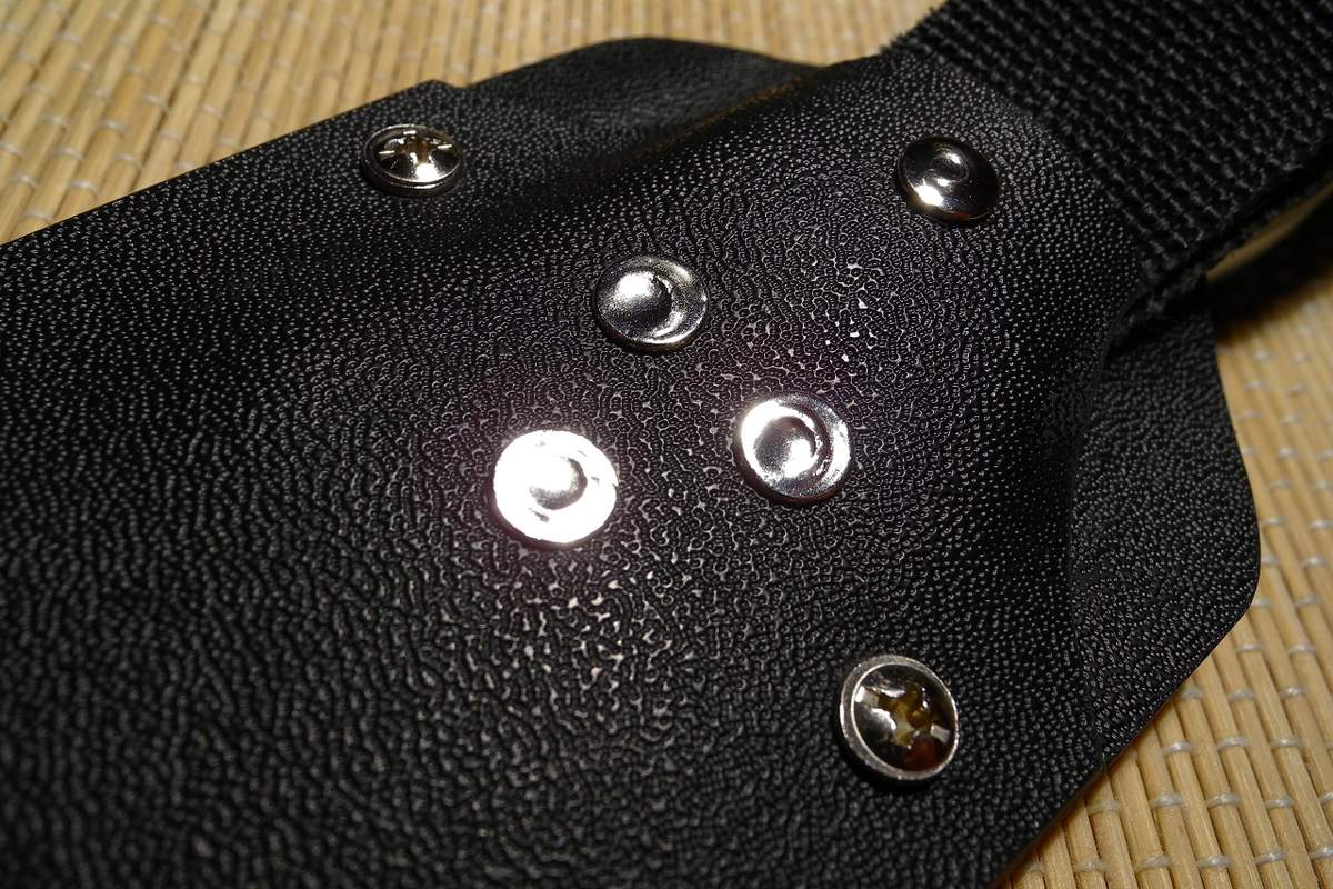 Верхние два винта позволяют регулировать то, насколько туго нож сидит в ножнах.