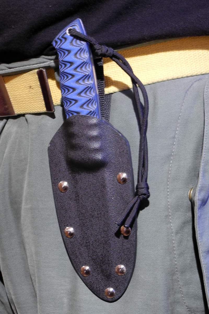 Подвес....смотрим как нож висит на поясе, рукоять выше ремня сантиметра на 3, возможно будет мешать, не всегда, но тем немение.