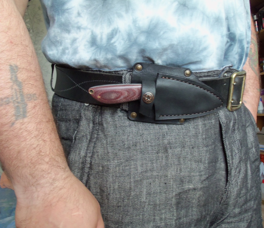 Ножны сначала сделал подвесные со свободным подвесом. Потом еще решил сделать ножны с возможностью ношения в горизонтально-вертикальном положении. Так что нож укомплектован двумя ножнами.