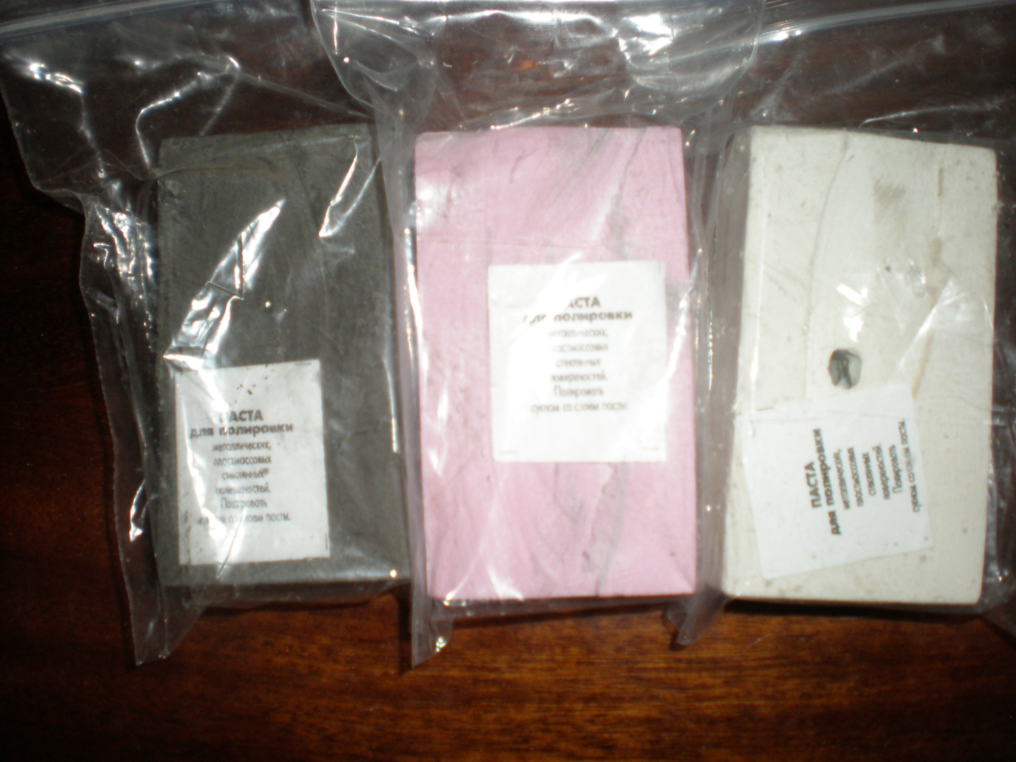 Купил я в Мастеровом полировальные пасты - серую, розовую и белую. Вот такие