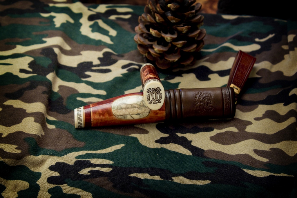 Ножны- низ из тех же материалов ,вставка рог лося,скрим "Медвежонок",верх чепрак,тиснение,пропитка обувными восками.