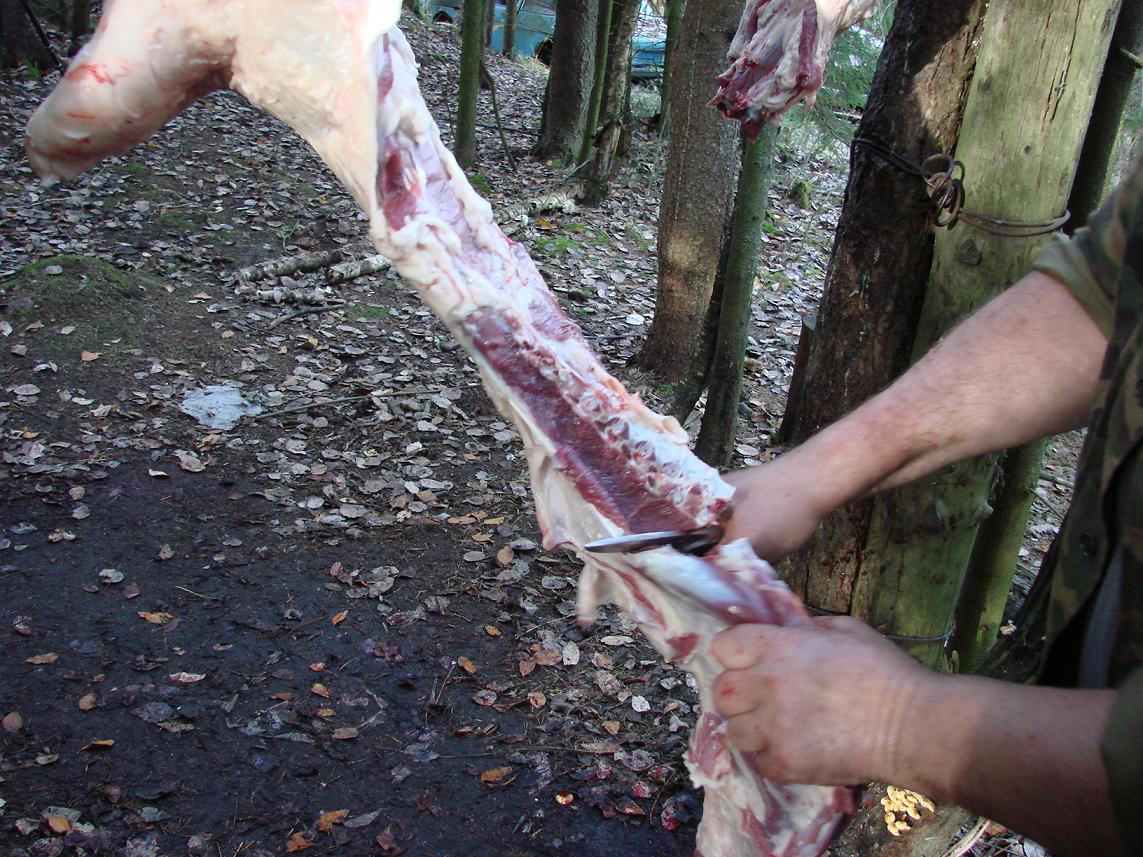 Вобще этот нож для забя не подходит,как батя сказал - толстый,короткий и тяжолый,если туш былобы больше он его выкинул бы.Дублер в двое легче и тоньше.Если кому что то интересно то в воскресение можно переснять на козах,жалко что к лосю нож не успел.