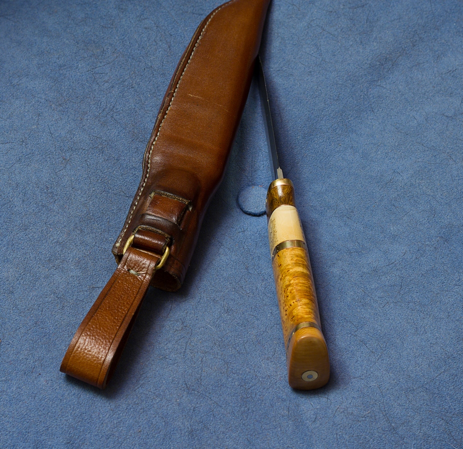 Ножны шорно-седельная кожа .Прошиты рыболовным шнуром.Пропитка под феном обувным воском.Вкладыш дуб