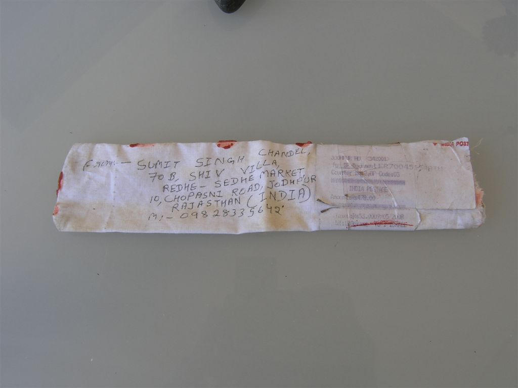 Когда сын позвонил из Запорожья , что бруски от фирмы "Осмий" уже в чемодане, я кинулся искать подходящие клинки .На глаза попался один из первых моих ножей. Тогда я еще никого не знал и заказал клинок из дамаска у мастера из Индии .Клинок пришел в упаковке , над которой ржали все работники почты .