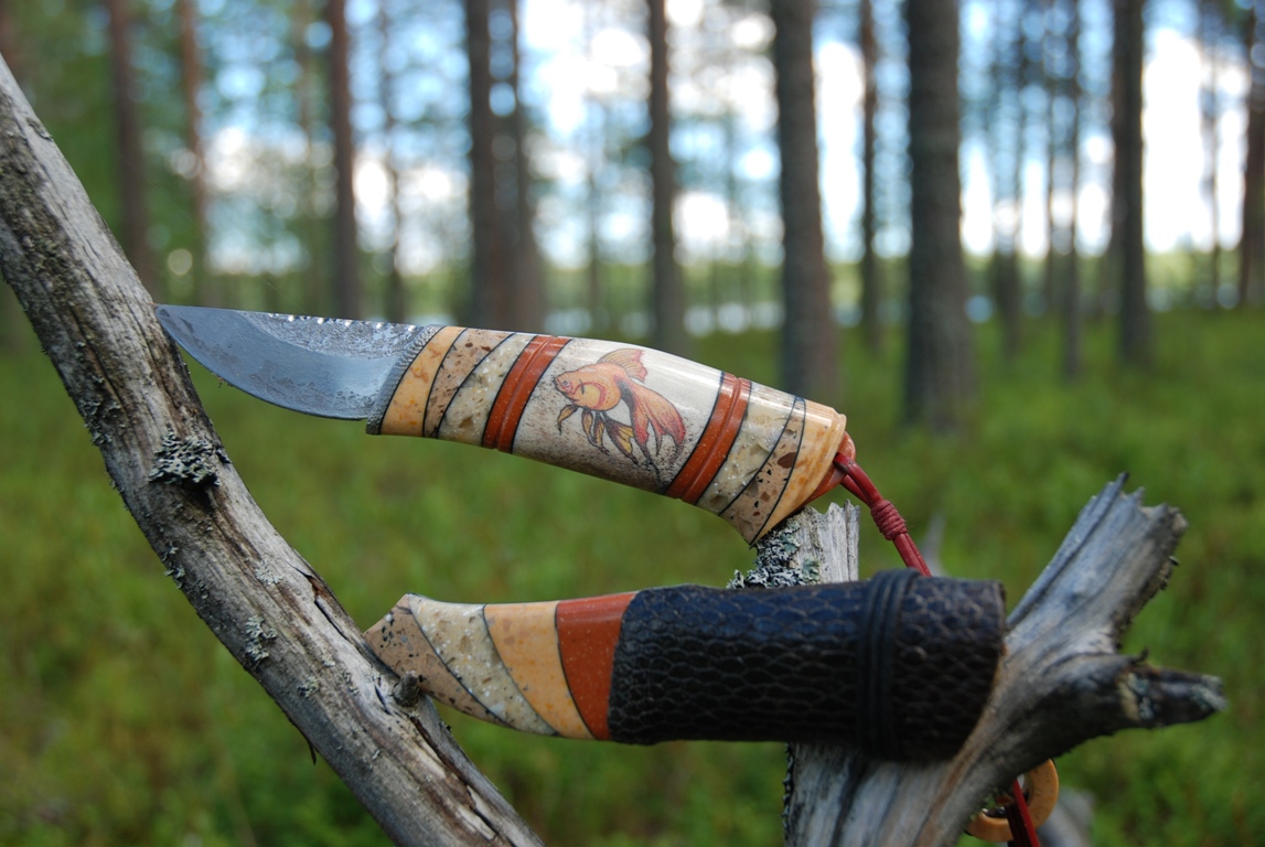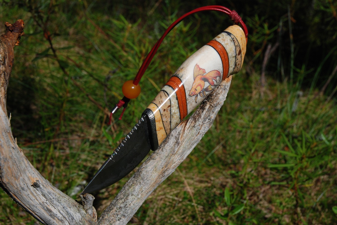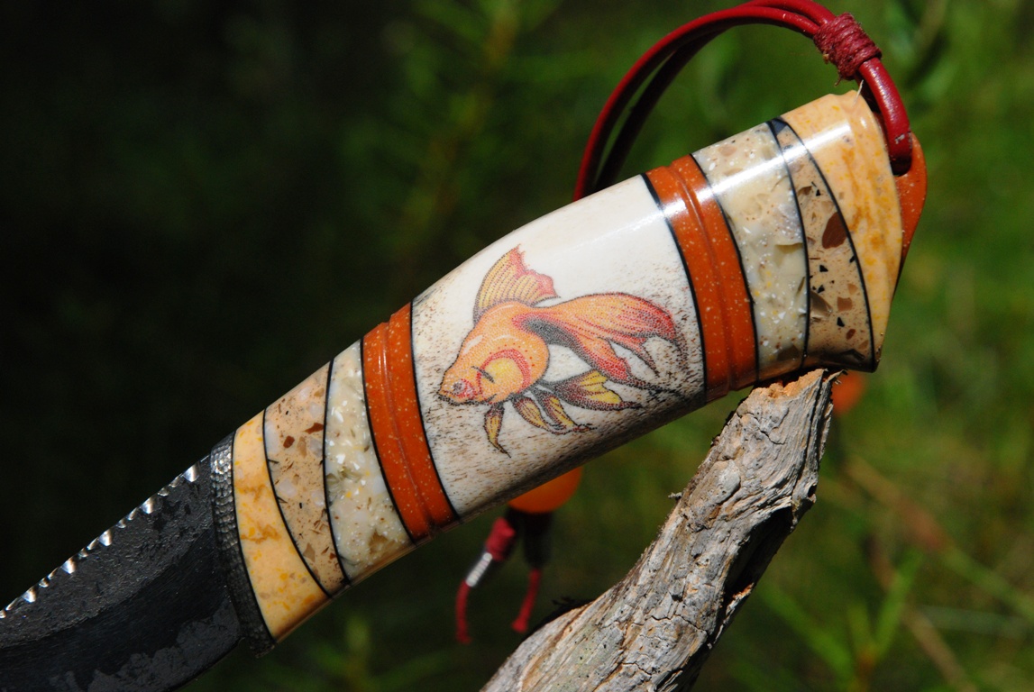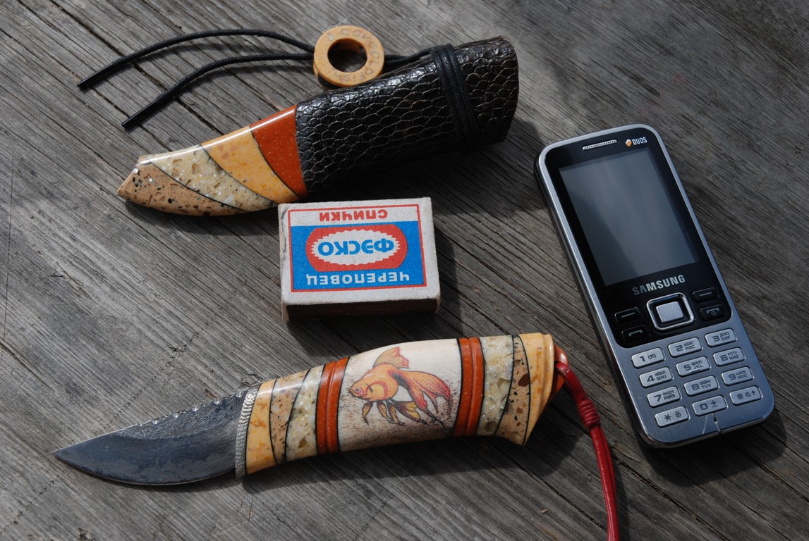 Тоже и с ножнами, опасность их уронить, делает девайс, милым полочником, и напрочь лишает его рабочих свойств, ......создавая нож неплохо бы учитывать и свойства монтируемых материалов, и помнить о нагузках, .....ставя заведомо колкий материал, на слабые места, ты явно забываешь о физике, что недопустимо для инженера. :D