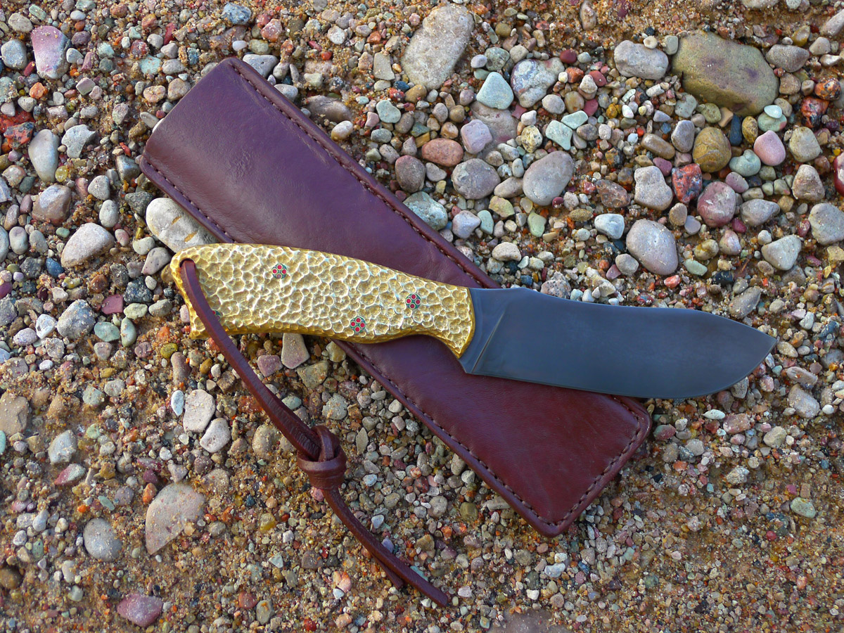 Собственно вот такой вот ножег, накладной монтаж будь он не ладен, это второй вариант, первый пришлось разбить-вылез скрытый штифт при обтачивании рукояти, ну а так как железо и дерево было заново подгонять лениво, сделал вот такой, в принципе всё видно...Х12мф от АБ, латунь, пины.