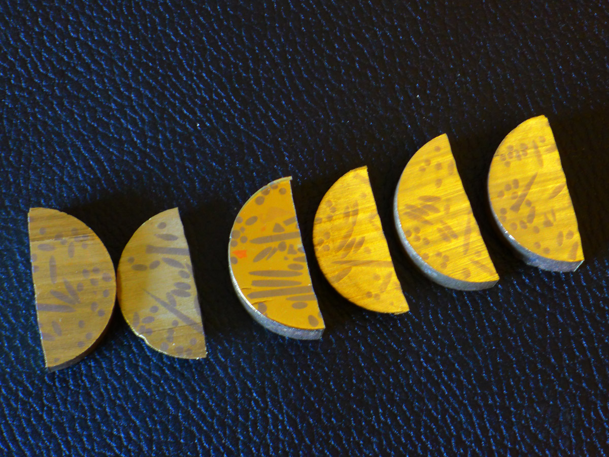 В наборе 6 разноцветных надфилей со значениями HRC: 65; 60; 55; 50; 45; 40. Начинать царапание следует с самого твёрдого 65 HRC. Если он оставил царапины - переходим к надфилю 60 HRC и далее. Когда надфиль не оставляет царапину, то определяем диапазон, в котором находится твердость измеряемой детали.