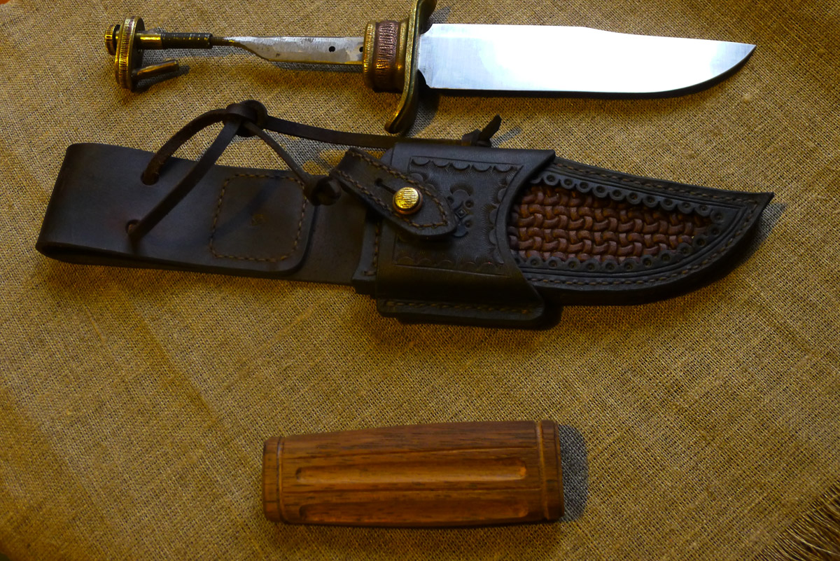фурнитура спаяна и отслесарена из комбинации латуни и меди (гарда, навершие, стяжка застёжка ножен)