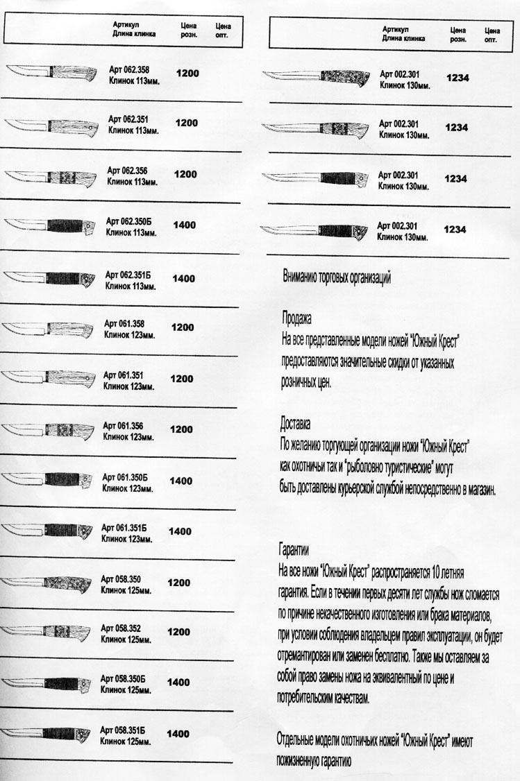 Блин! Незнаю как объяснить. Если у вас такое было, то поймёте. Если нет, то - это сложнее. Заносит меня. Увлекаюсь каким нибуть ножом или производителем. И начинаю собирать о нём информацию. Всю, какую найду. Ну и со временем либо отпускает, либо делаю покупку. Так был куплен Фискарь, Эрик, Опинель, Венгер и Ека. Вот теперь Южный Крест торкнул. Слава богу их ещё можно найти в продаже. Есть у меня картинка, но она не полная. Может у кого вся есть? Сейчас попробую вставить.