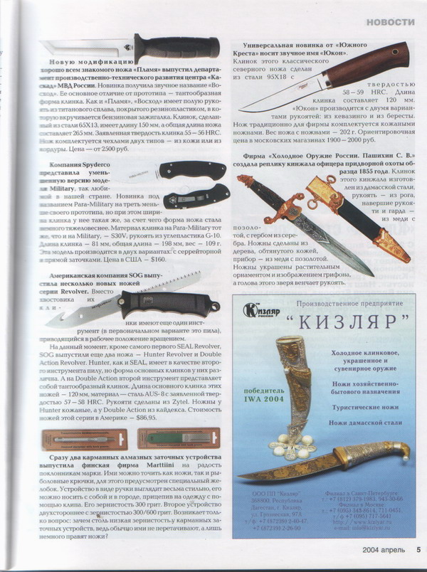 ОК! Это старые новости из разных номеров журнала НОЖ. Как только появлялась новая модель от ЮК. Нож тут же об этом сообщял.