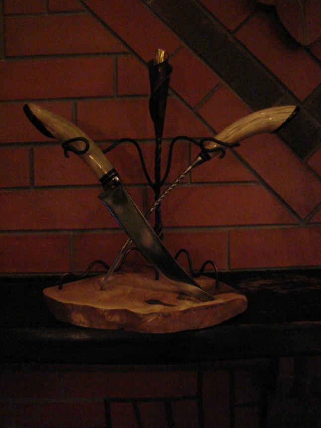 Да каминный набор,вилка+ ножик. 95х18 ,лосик,эбен,дерево на подставке свиль березы