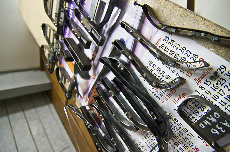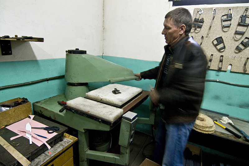 Между основной фотосъемкой и вечерним отдыхом на берегу Оки, нам показали помещение (очень, кстати, небольшое), в котором до недавнего времени размещалась вся мастерская. В настоящее время там производятся ножны для ножей.