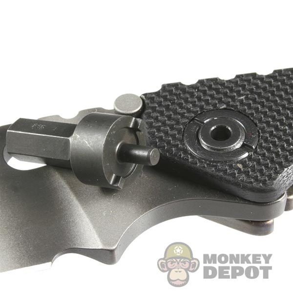 ключ вставляется в болт, возле самого болта берется плоскогубцами. Одна рука давит на отвертку(ключ) сверху, второй пытаемся повернуть плоскогубцы (но аккуратненько, постепенно наращивая усилие). .Еще конечно понадобится третья рука - фиксировать нож :)
